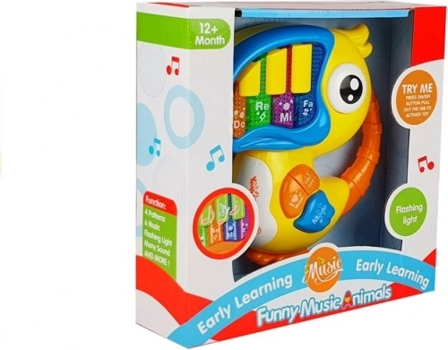Interaktivni klavir v obliki barvitega ptička je opremljen z glasbenimi tipkami 'Do', 'Re', 'Mi', ki bodo vsakega otroka očarali s svojo barvitostjo in veselo zasnovo. Zvočni in svetlobni učinki pomagajo razvijati čute in domišljijo otroka: