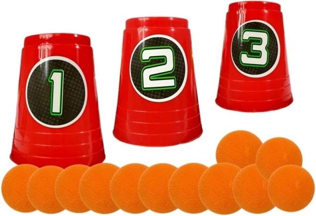 Del paketa je 12 mehkih žogic in več oštevilčenih lončkov za izboljšanje cilja in strateške igre. Dizajn v belo-oranžni barvi daje izdelku moderen videz, medtem ko polprosojen rezervoar omogoča enostavno spremljanje količine razpoložljive municije.