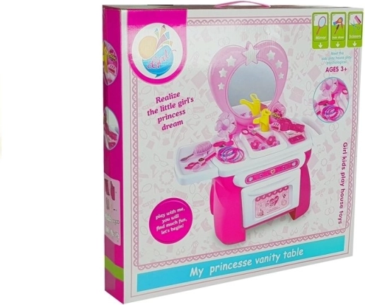 Otroška toaletna mizica z lepotnimi dodatki je idealna za deklice, ki rade posnemajo svoje mamice in starejše sestre. Ta čudovita rožnata mizica s srčkastim ogledalom je dopolnjena z: