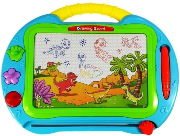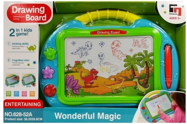 Zabavna in poučna magnetna tabla za otroke z veliko risalno površino, pisalom in 3 žigi. Ustvarjajte večbarvne slike, vse zlahka izbrišite ter spodbujajte ustvarjalnost in fino motoriko. Zahvaljujoč ročaju je tabla lahko prenosna in primerna za deklice in dečke.
