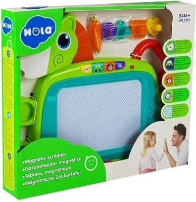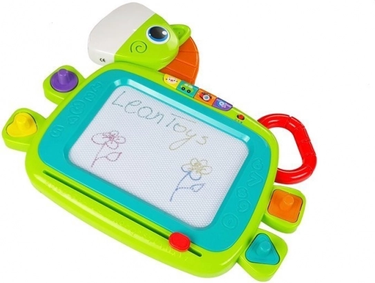 Odkrijte zabavno magnetno tablico, ki otrokom omogoča risanje in brisanje v nedogled. Velik večbarven zaslon, štirje veseli zvočni gumbi in komplet žigov spremenijo vsako idejo v izvirno sliko. Zahvaljujoč udobnemu ročaju lahko otrok svojo risalno tablico vzame kamor koli.