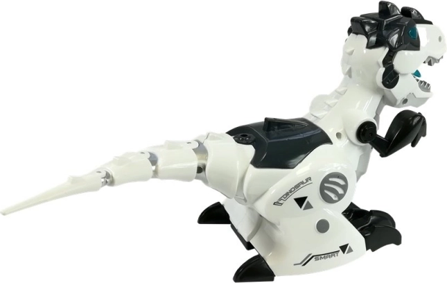 Odkrijte vznemirljivi svet dinozavrov z mehanskim T‑reksom na daljinsko upravljanje. Dinozaver ima izrazite svetlobne elemente in oddaja realistične zvoke, ki še okrepijo vzdušje igre. Zaradi robustne konstrukcije ter sodobne kombinacije bele, črne in sive barve deluje kot pravi futuristični tvor.