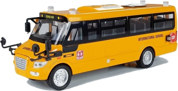 Replika šolskega avtobusa deluje realistično zaradi črnih ogledal in tesnil oken, srebrnih okrasnih pokrovov ter podrobne notranjosti. Prozorna okna omogočajo vpogled v notranjost, medtem ko odpirajoča se stranska in zadnja vrata ter odpirajoč se pokrov motorja spodbujajo ustvarjalno igro. Vgrajeni svetlobni učinki in zvoki delujočega motorja še okrepijo doživetje vožnje.
