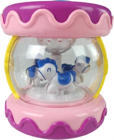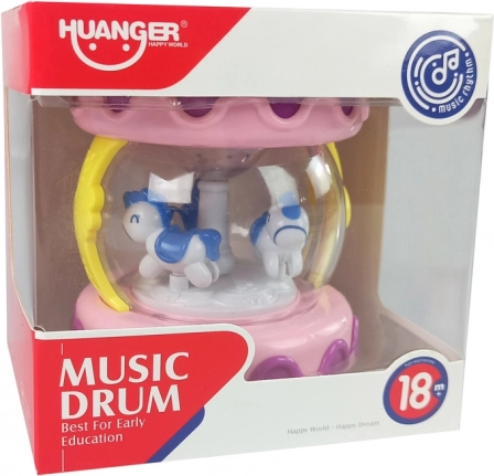 Čar tega bobenčka je notranji karusel s konjički, ki pritegne in ohranja pozornost, medtem ko otroci razvijajo koordinacijo s to ustvarjalnost spodbujajočo igračo. Igra z bobenčkom pomaga razvijati drobne prstke in tako prispeva k prihodnjemu usvajanju spretnosti, kot sta pisanje in logično razmišljanje.