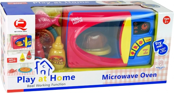 Del paketa so plastične igrače, kot so riba, pečen piščanec, pica ter stekleničke ketchupa in gorčice. Po odstranitvi varovala na zadnji strani igrače in izbiri programa se prižge notranja lučka, krožnik s hrano se začne vrteti in tako posnema resnično uporabo mikrovalovne pečice.