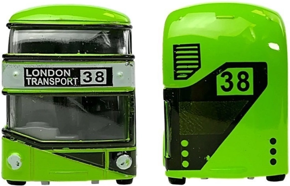 Podrobna okna, sedeži in potiski, kot je »London Transport 38«, pričarajo vzdušje pravega dvonadstropnega avtobusa.
