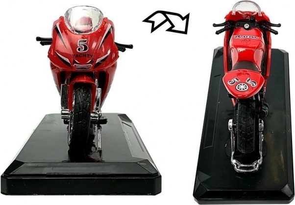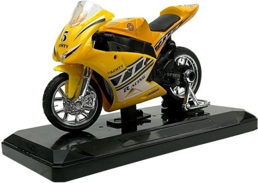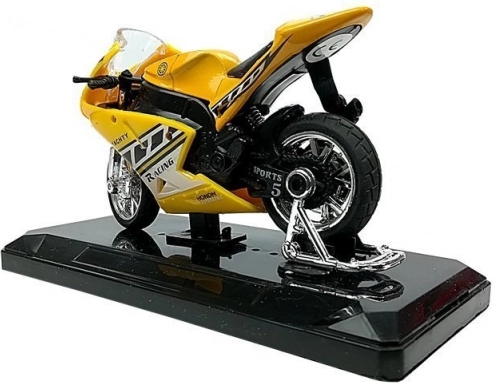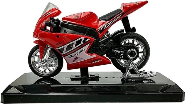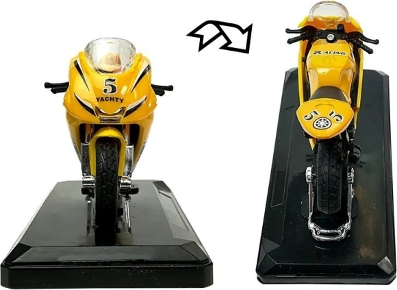 Stilski model športnega motorja v merilu 1:18 bo razveselil male in velike zbiratelje. Ponuja zvočne učinke ob pritisku na zadnji del, vrtljiv krmilo, vztrajnik za vožnjo naprej in odstranljiv podstavek za razstavitev. Na voljo v 4 barvah – rumena, rdeča, zelena in modra.