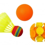 .Ta otroški športni komplet, ustvarjen za aktivnosti na prostem, vam omogoča veliko zabave med številnimi počitniškimi izleti. Komplet je zasnovan z izjemno natančnostjo in iz trpežnih materialov, zato bo popestril čas najmlajšim. Komplet je pakiran v nenavaden nahrbtnik, s katerim boste vse elemente zlahka vzeli s seboj na izlet, igrače pa bodo zaščitene pred izgubo. Barviti elementi so idealni za večjo skupino otrok. Primerni so tako za samostojno igro vašega malčka kot za igro s sorojenci ali prijatelji. Gre za idealno igračo za začetek športne pustolovščine. Pri igri z elementi kompleta se otroci učijo športnega vedenja, zdrave tekmovalnosti in urijo koordinacijo.