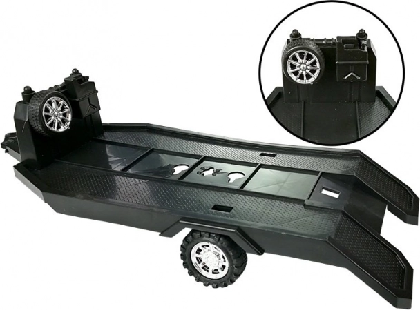 - Realistični detajli: velika kolesa, kromirani elementi, mrežica, rampa prikolice.