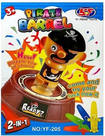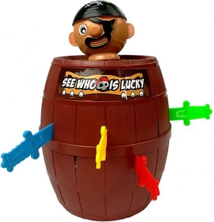 Ta vesela piratska igra zabava otroke in odrasle. Postavite pirata v sod, postopoma vstavljajte količke/mečevce in opazujte, komu bo pirat skočil. Preprosti principi, hiter potek in veliko zabave delajo to igro idealno izbiro za družinsko igranje in otroška praznovanja.