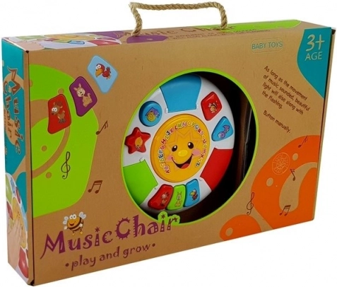 Veliko centralno sonce predvaja smeh in tolkala, mini klavirček z živalicami pa spodbuja odkrivanje glasbe.