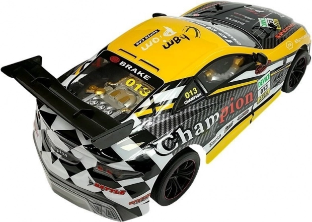 Slogovna dirkaška karoserija z izrazitimi nalepkami in aerodinamičnim krilcem bo razveselila vsakega ljubitelja hitrih avtomobilov. Odprt videz motorja in natančni detajli poudarjajo realističen vtis, model pa ostaja trpežen in primeren za vsakodnevno zabavo.