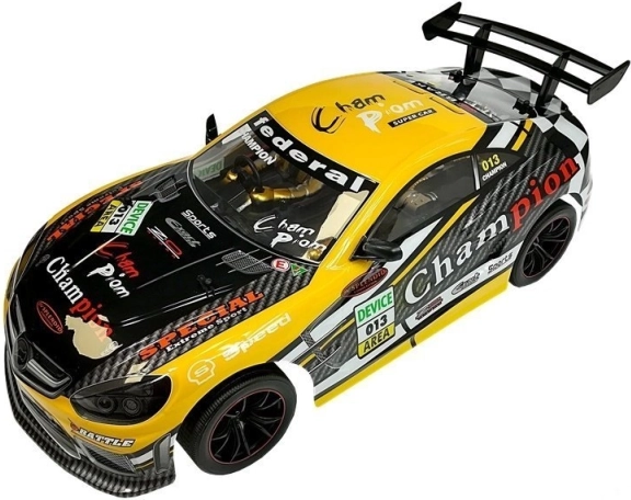 Zmogljiv RC športni avtomobil v merilu 1:10 prinaša realistično dirkaško izkušnjo doma in na prostem. Zahvaljujoč upravljanju na frekvenci 2,4 GHz boste uživali v gladkem vodenju brez motenj, mehke gumijaste pnevmatike zagotavljajo odličen oprijem, trpežna karoserija iz PVC pa prenese udarce in nizke temperature. V kompletu je polnilna baterija s polnilnikom.