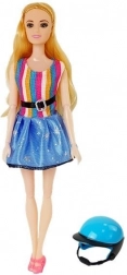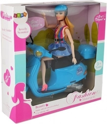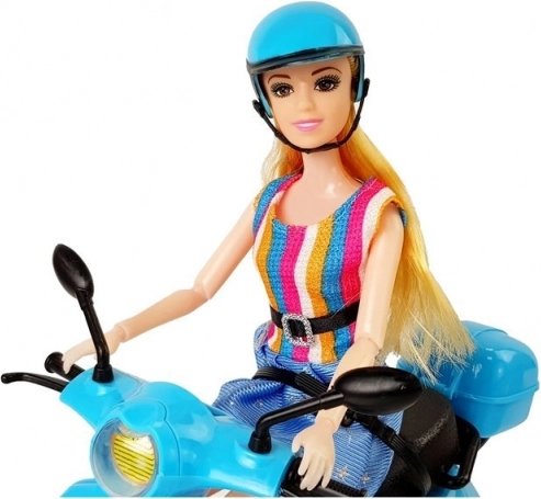 Punčka v setu ima dolge blond lase, ki jih je mogoče česati in oblikovati. Oblečena je v modne obleke z modrimi in barvnimi črtami, kar dopolnjuje njen eleganten videz. Premične roke in noge omogočajo enostavno namestitev punčke na skuter, kar otrokom omogoča ustvarjanje lastnih scenarijev in zgodb.