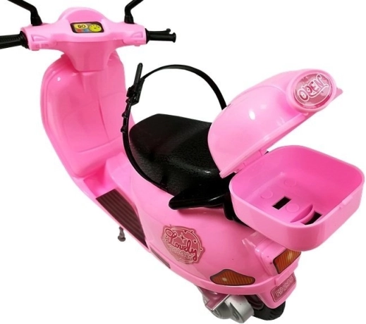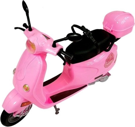 Rožnat skuter je podrobno izdelan z realističnimi elementi, kot so ogledala in shranjevalni zabojček. Zaradi stabilne konstrukcije in podpor je stabilen pri igri.
