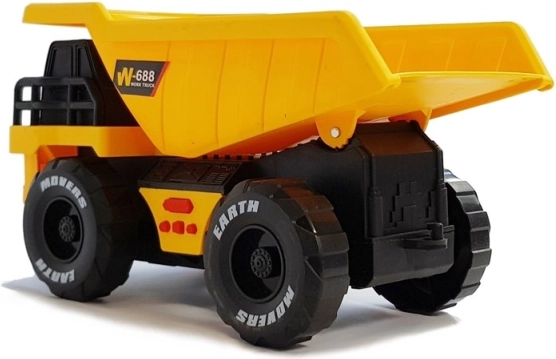 Ta rumeno-črni otroški prekucnik izstopa z robustno izdelavo in realističnimi podrobnostmi, ki spodbujajo domišljijo pri igri na gradbišču. Velika kolesa zlahka premagajo preproge in pesek, funkcionalni keson pa se preprosto preklopi za prevoz peska, kamenčkov ali drobnih igrač.