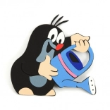 Ljubki Krtek z modro kanglico, idealen kot del otroške dekoracije.