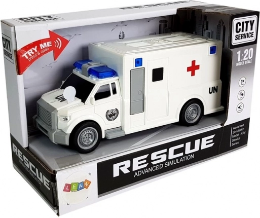 Reševalno vozilo je izdelano v merilu 1:20, ima gumijasta kolesa za tiho vožnjo in je dobavljeno v darilni škatli – idealno kot darilo za otroke od 3. leta dalje.