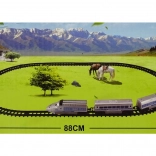 Ta čudovit vlakovni komplet je idealen za male strojevodje, ki si želijo uživati v edinstveni izkušnji vožnje z vlakom. Komplet vsebuje vlak z dvema dodatnima vagonoma, ki se zlahka pritrdijo z enostavnimi zaskočni spoji. Proga je sestavljena iz dveh ravnih in dvanajstih polkrožnih tirov.