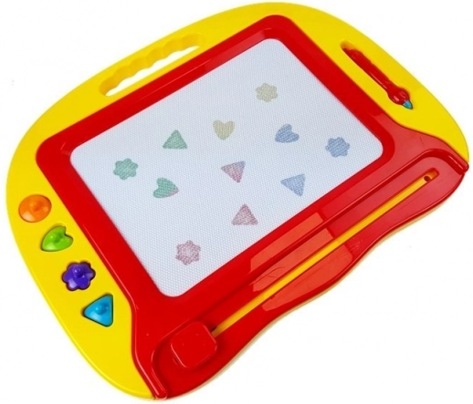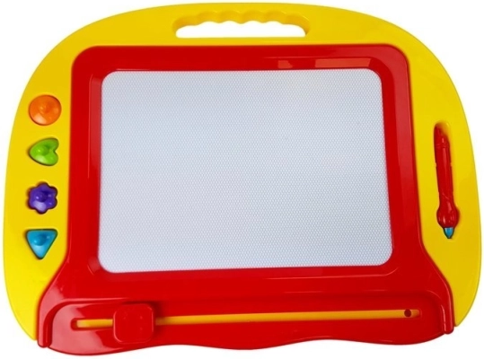 Rdeča magnetna tabla je idealna igrača za mlade ustvarjalce. Ta zabavna igrača otrokom omogoča neskončno ustvarjanje z enostavnim brisanjem risbe. Vsebuje: