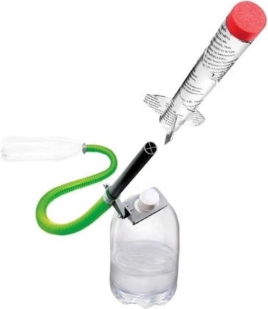 Odkrijte fizikalna načela raketnega leta na zabaven način. Ta okoljski znanstveni projekt je izdelan iz odpadkov in gnan z ekološko energijo, zato ne le zabava, temveč tudi izobražuje.