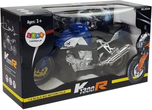 Med vožnjo motocikel oddaja realistične zvoke hitre vožnje, sprednje in zadnje luči se prižgejo, takoj ko se vozilo začne premikati. Igrača je primerna za otroke od 3 let naprej, izpolnjuje standarda CE in EN 71 ter je zapakirana v darilni karton z prozornim okencem.