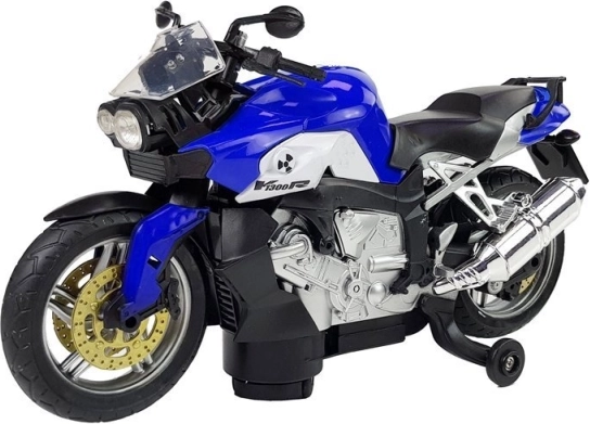 Ta modri otroški motocikel navdušuje z aerodinamično obliko in živahno barvo, ki pritegne pozornost vsakega malega dirkača. Stabilizacijska stranska kolesca ohranjajo igračo v navpičnem položaju in olajšajo upravljanje tudi začetnikom. Spodnje vrtljivo kolesce daje odlično okretnost in hitro spremembo smeri, kar je pri otroških dirkah velika prednost.