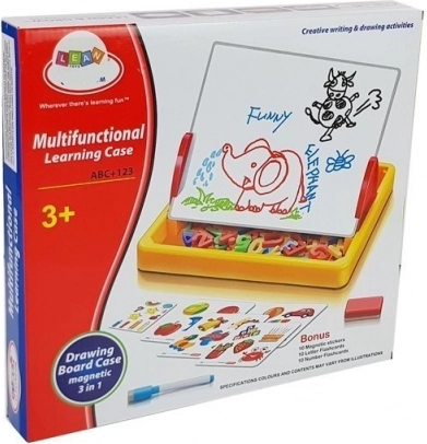 Ta magnetna risalna tabla je odlična izbira za predšolske otroke in šolarje. Otroci vadijo pisanje, risanje ter sestavljanje besed in enostavnih računov s pomočjo pisane zbirke magnetnih elementov. Stabilna zložljiva konstrukcija omogoča udobno uporabo na mizi ali na tleh.