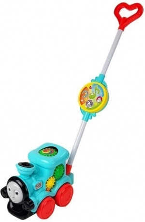 Ta barvit potisni vlakec je odličen spremljevalec za najmlajše. Zahvaljujoč ergonomskemu ročaju je enostaven za upravljanje in podpira naravno gibanje otroka. Med vožnjo piska in predvaja melodije, kar motivira otroke k nadaljnjemu odkrivanju in zabavi.