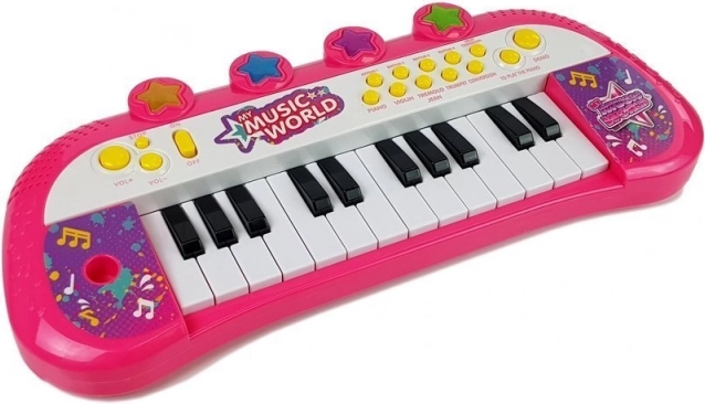 Ta klavir ima 24 tipk. Dekliški klavir izstopa z očem prijazno rožnato-vijolično barvno izvedbo in svetlečimi zvezdami v 4 različnih barvah. Orgle so izdelane iz certificirane, robustne plastike najvišje kakovosti, zato imajo certifikat CE. Nad črno-belimi tipkami je vrsta barvitih različnih gumbov, ki aktivirajo senzacionalne učinke in funkcije.