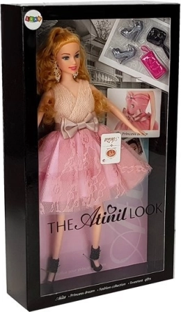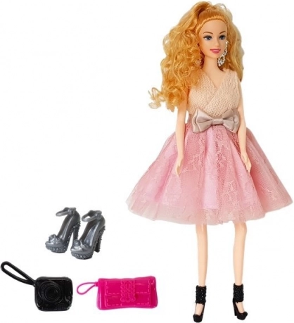 Slogovna lutka manekenka z blond lasmi v nežno rožnati obleki z mašno bo razveselila vsako malo ljubiteljico mode. V paketu najdete elegantne salonarje, torbico in fotoaparat za še bolj ustvarjalno igro. Lutka je idealna za modne revije in prizore, ima nežen make-up in je odlično darilo za otroke od 3 let.