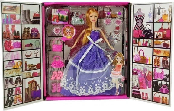 Ta modna punčka z dolgimi, gostimi lasmi in nežnim ličenjem deluje kot prava princese. Oblečena je v dolgo večerno krilo v vijolični barvi z belo čipko, ki poudari njen eleganten videz. Otroci bodo z njo uživali ure zabave pri izmišljanju modnih kombinacij in zgodb.