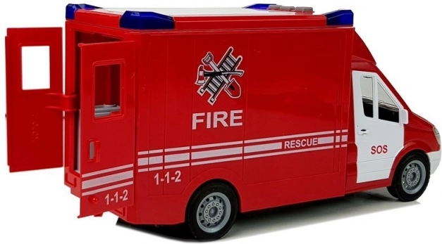 Gasilski avto s vztrajnikom, lučmi in zvoki, z odpiralnimi vrati