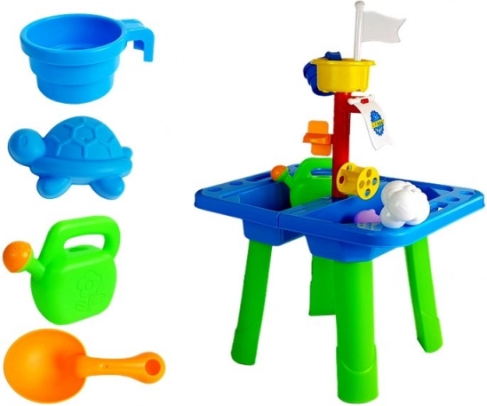 Mizica za vodne in peščene igre je odlična izbira za vsakega otroka, ki ljubi ustvarjanje in igro v pesku. Ta praktična mizica otrokom omogoča, da se potopijo v svet domišljije in ustvarjalnosti z priloženimi igračami za pesek.