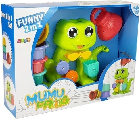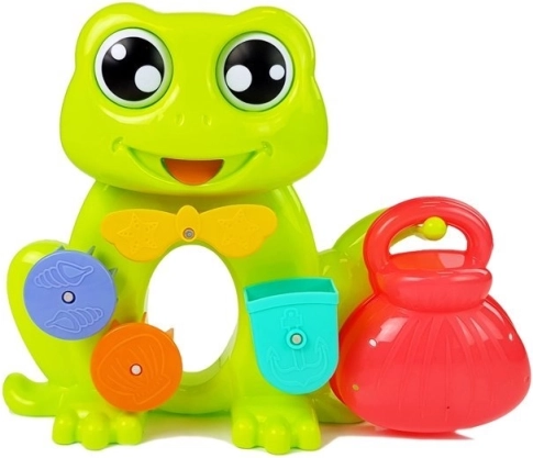 Ta ljubka žaba z vrtečimi elementi privablja otroke k igri v kadi. Po nalivu vode v njeno glavo se začne majhno vodno kolo obračati, kar ustvari tok vode iz ust žabe. Poleg tega ima žaba oči, ki se med pretokom vode vrtijo, kar pritegne in zabava vsakega otroka.