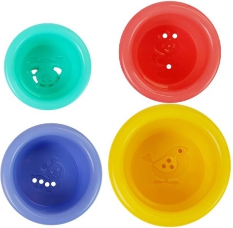 Del seta so 4 različno barvna vedra, ki jih je mogoče zlagati na kup. Na njihovi osnovi so različno oddaljene odprtine, skozi katere je mogoče opazovati različno vodne tokove. Vsako vedro je okrašeno z vtisnjenimi oblikami živali, kot so ptiček, črv, zajec in želva. Ta igrača ni le zabavna, ampak tudi pomaga otrokom spoznavati barve in razvijati njihove motorične sposobnosti.