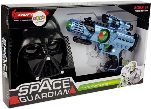 V tem čudovitem setu boste našli futuristično modro pištolo in črno masko, ki sveti z modrimi in rdečimi lučmi. Otroci bodo uživali v realistični igri na vesoljske bojevnike. Vsak element je izdelan iz kakovostne plastike, ki je varna in vzdržljiva.