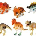 Komplet figuric dinozavrov, 6 kosov, je idealen za otroško domišljijo in učenje. Vsebuje različne vrste, kot so tiranozaver, stegozaver in triceratops. Igrače so izdelane iz varne gume, so lahke in enostavne za držanje v majhnih rokah.