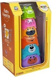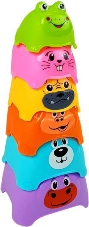Barvna piramida je igrača, ki odlično podpira razvoj vašega otroka. Vsebuje kocke v različnih barvah, potiskane z živalicami. Na vrhu piramide je najmanjša kocka v obliki žabice. Kocke so izdelane iz varnega, netoksičnega materiala, ki je trpežen in odporen.