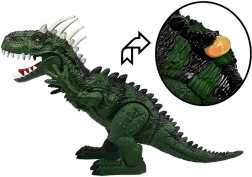 Interaktivni zeleni dinozaver na baterije bo navdušil male ljubitelje prazgodovine. Hodi naprej, oddaja realistične zvoke rjovenja, ima svetlobne učinke v »luskah« na glavi, vali jajca in v prsih skriva projektor s sliko pravega tiranozavra. Odlična igrača, ki spodbuja domišljijo in prinaša ure zabave.