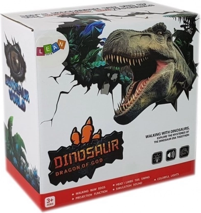 Barvno svetleče luske na glavi in vgrajen projektor, ki projicira podobo tiranozavra, spremenijo vsako sobo v napeto prazgodovinsko prizorišče.