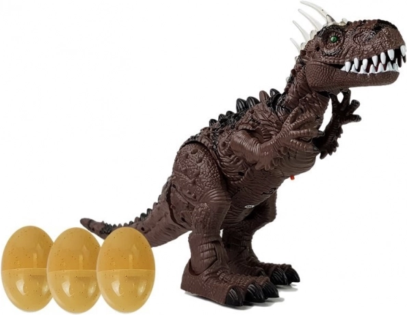 Priložena so 3 jajca. Preprosto jih vstavite v odprtino na hrbtu in med hojo jih dinozaver postopoma izvali – odličen učinek, ki ga otroci obožujejo.