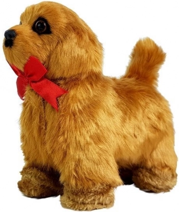 Izpolnite otroške sanje o lastnem ljubljenčku. Interaktivni kužek z mehkim rjavim kožuščkom reagira na božanje – laja, maha z repom in premika glavico. Ob pritisku na trebušček začne hoditi naprej, ponovno laja in predvaja prijetno melodijo. Zaradi realističnega videza s temno rjavimi očmi in rdečo mašnico si ga bodo otroci hitro vzljubili.