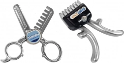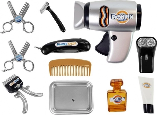 Sušilnik ob pritisku na ročaj zavrti barvni boben v notranjosti, strižnik pa ob premiku stranskega gumba oddaja avtentičen zvok striženja. Komplet vključuje vse od glavnika, ogledalca in varnih škarij do trimerja, igralne britvice ter stekleničk za »kozmetiko«.