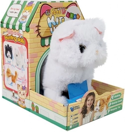 Ljubka bela perzijska mucka bo razveselila vsakega otroka. Po vklopu hodi, zna pospešiti korak, miga z repom, odpre smrček/usta in ob božanju po glavici oddaja zvoke. Odličen način, kako otroka voditi k odgovornosti in skrbi za žival.