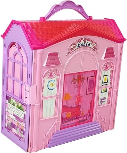 Zložljiva blond hišica za punčke z dodatki Kuhinja Stranišče Spalnica v kovčku