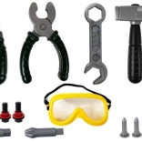 Set vsebuje čelado in očala, tako da se otrok počuti kot pravi mojster in poskrbi za svojo varnost med igro.