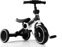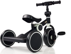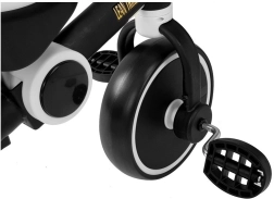 Črnobeli otroški tricikel blagovne znamke LAMBOR predstavlja popolno kombinacijo funkcionalnosti in dizajna za male pustolovce. Konstrukcija tricikla zagotavlja visoko stabilnost zahvaljujoč trem čvrstim kolesom in udobnemu sedežu, ki ga je možno nastaviti na dveh različnih višinah.