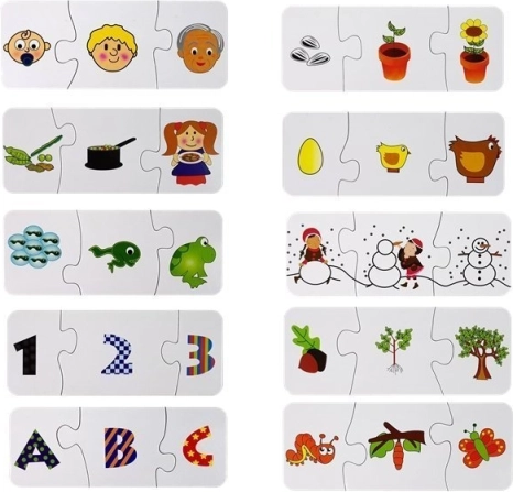 Pametne in igrive sestavljanke za otroke od 3. leta dalje, ki razvijajo logično razmišljanje, potrpežljivost in spoznavanje sveta. Otroci razvrščajo pravilni vrstni red in se učijo števil, črk, življenjskih ciklov živali in rastlin ter razmerij vzrok–posledica. Samokontrolni koščki prispevajo k uspehu ter podpirajo fino motoriko in koncentracijo.