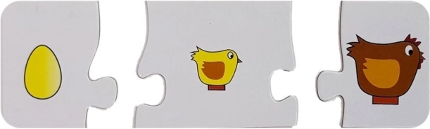 Ta komplet sekvenčnih sestavljank prinaša učenje skozi igro: otroci povezujejo slike v logičen niz in odkrivajo, kako iz jajca nastane piščanec, iz gosenice metulj, kako raste rastlina ali drevo ter kako nastane jed od surovin do končnega obroka. Barvite ilustracije in trdni kartonski koščki so idealni za majhne roke in spodbujajo k ponovnemu igranju.